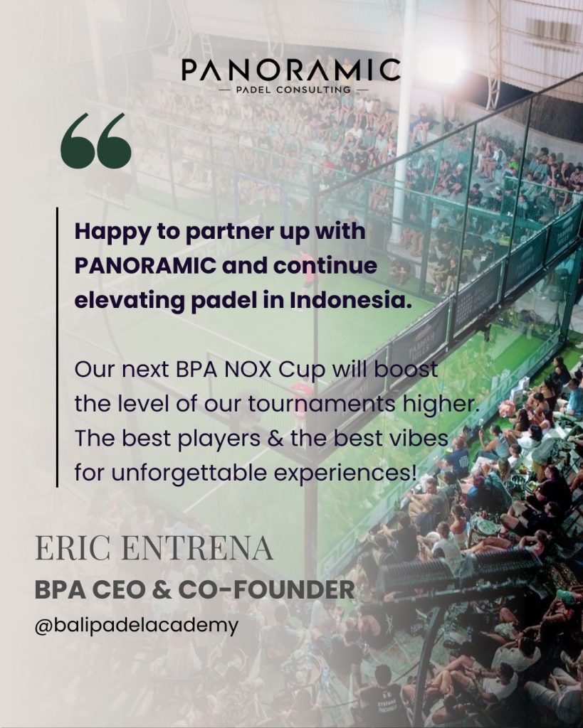 “We are happy to partner up with PΛNORΛMIC and continue elevating padel together in Indonesia.Our next BPA NOX CUP will boost the level of our tournaments even higher. Combine the best padel players with the best vibes, and we will create the most unforgettable experiences!” said Eric Entrena, CEO & Co-Founder of Bali Padel Academy.
