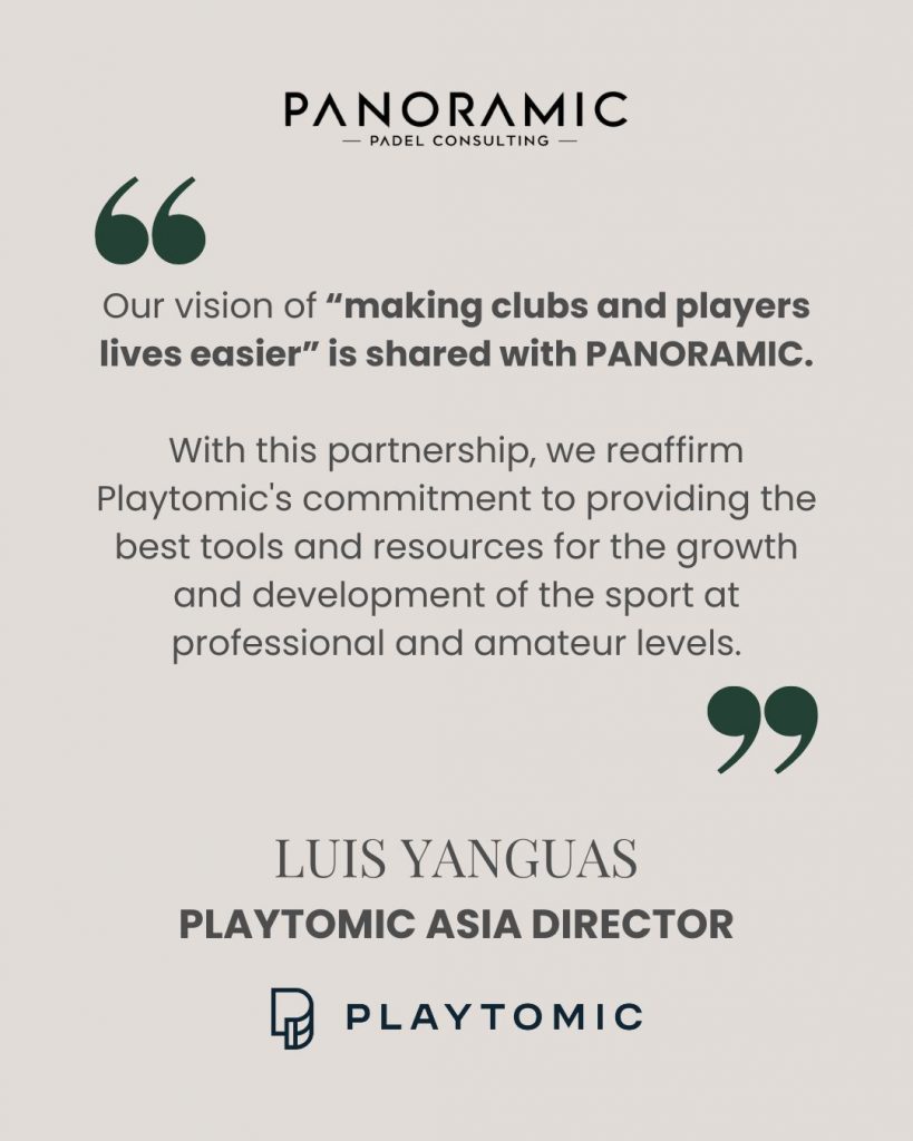 Luis Yanguas, Playtomic Asia Director says: “Our vision of “making clubs and players lives easier” is shared with PANORAMIC. With this partnership, we reaffirm Playtomic‘s commitment to providing the best tools and resources for the growth and development of the sport at professional and amateur levels.
