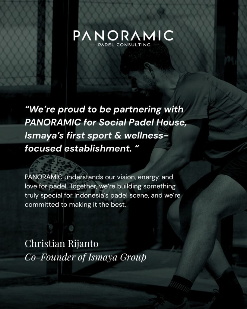 Pau Vergés, Co-Founder of PANORAMIC also expressed, “We’re delighted to partner with Social Padel House to continue boosting padel in Jakarta, Indonesia, and across Asia. The new Ismaya Group Sport & Wellness project is truly exciting. Big dreams and opportunities also come with big responsibilities, and we’re embracing them with passion, a hard-working mindset, and a pursuit of excellence,” .